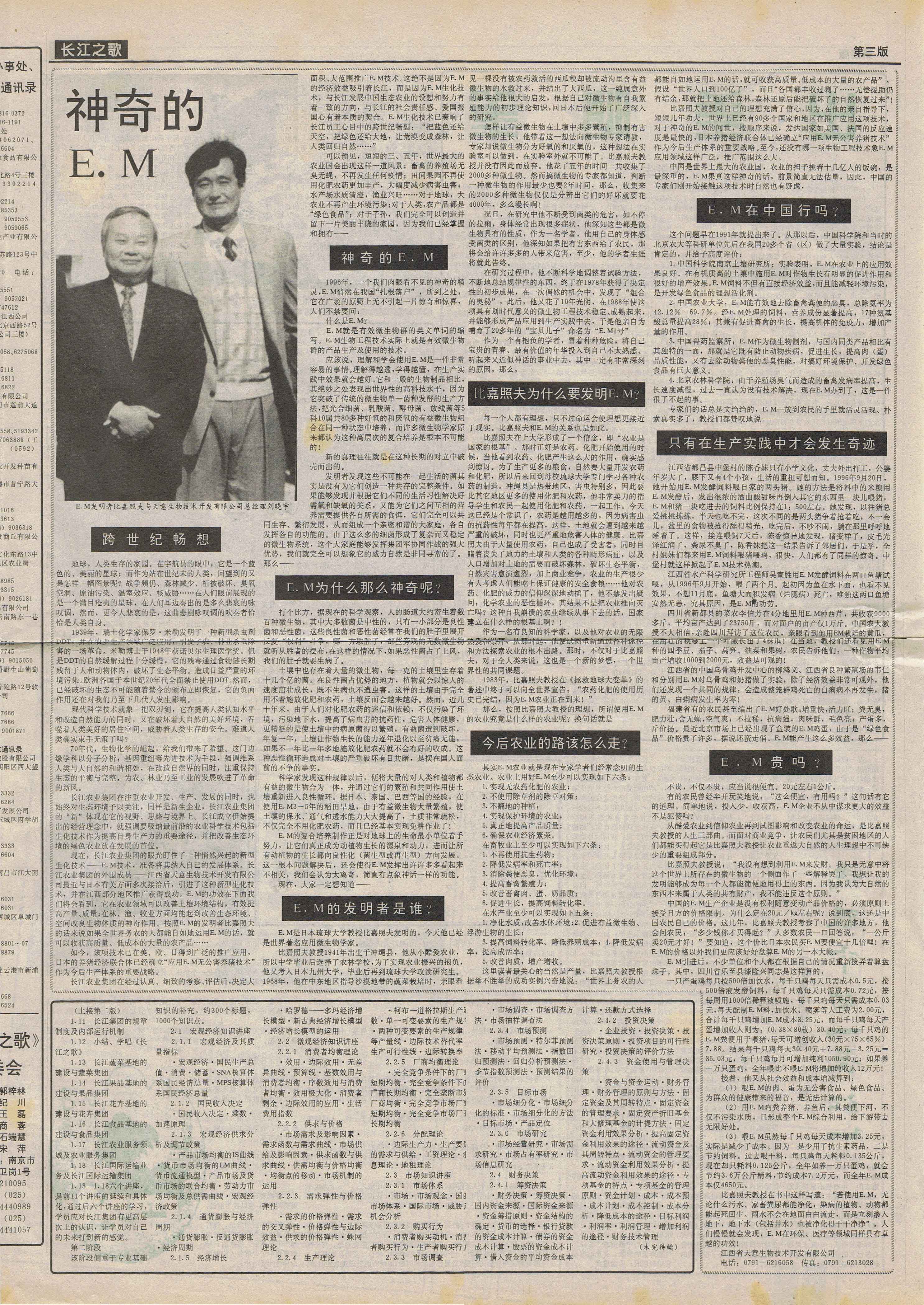 十年之“賭” 《十年之賭》,這是一篇寫于20年前的文章,曾發表于《中國青年》、《科技日報》、《中國工商》等報刊。從這篇文章中,您可以看到一位創業者的艱辛與困苦,同時了解EM技術引進中國的來龍去脈。